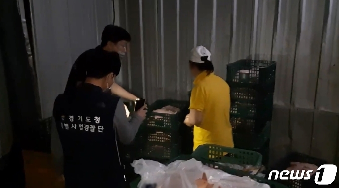 | 경기도가 본격적인 여름휴가를 맞아 지난 6~10일 냉동고기, 소시지 등 캠핑음식을 집중 수사해 유통기한경과 제품 보관 등 14건의 위법행위를 적발했다.(경기특사경 제공)© 뉴스1 |
