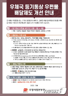 | 전북지방우정청은 26일부터 등기통상 우편물(이하 등기우편물) 배달 방법을 개선·시행한다.(전북지방우정청 제공)2020.10.2 6/© 뉴스1 |