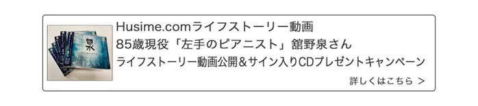 85歳の今なお輝き続ける舘野さんが、みずから語る人生の物語、「ライフストーリー」を、ぜひHusimeTVでご覧ください。