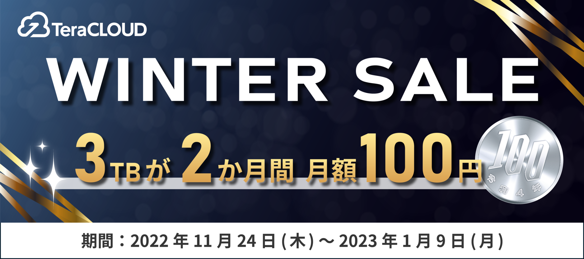 からの記事と詳細 ( 【3TBが月額100円から】国産クラウドストレージ「TeraCLOUD」、 年に一度のビッグセールを11月24日(木)から開催 - PR TIMES )
