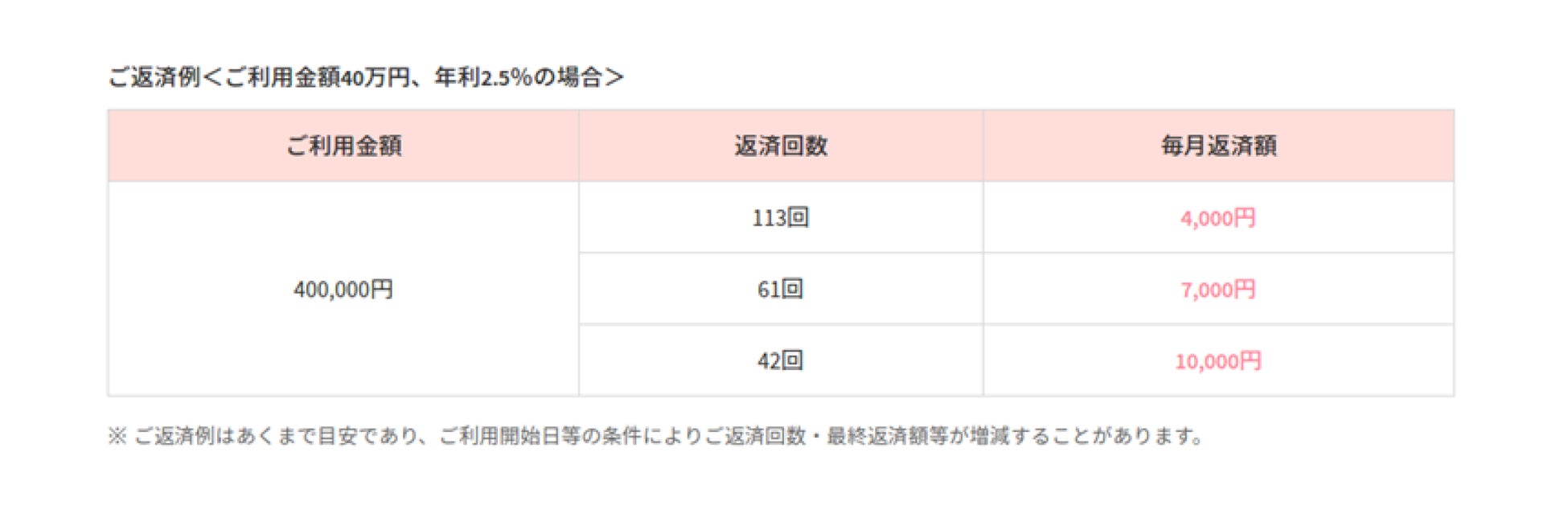 ■採卵費用40万円を「不妊治療サポートローンプラス」で支払う場合