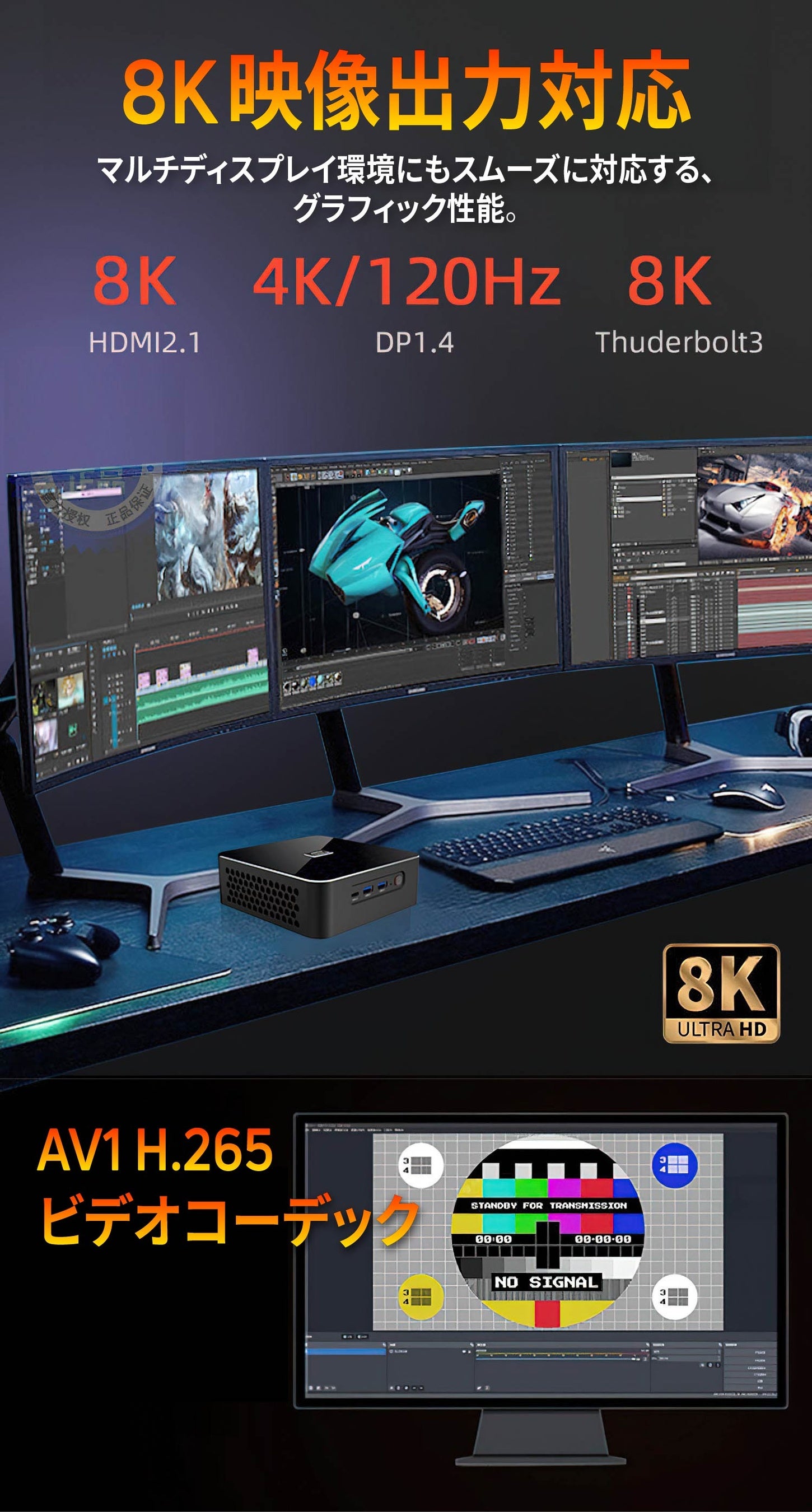 ExoRyeはHDMI 2.1、DisplayPort 1.4、Thunderbolt3を搭載し、最大で3台のディスプレイと接続可能です。2つの8K映像と1つの4K映像を同時に出力して、マルチタスク環境を構築できます。